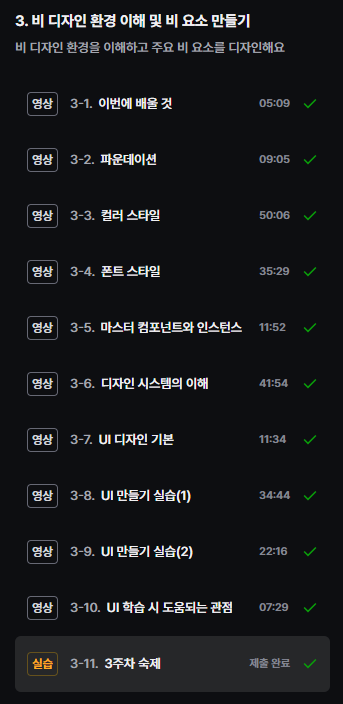 - 3주차 강의 완료 후, 과제 제출