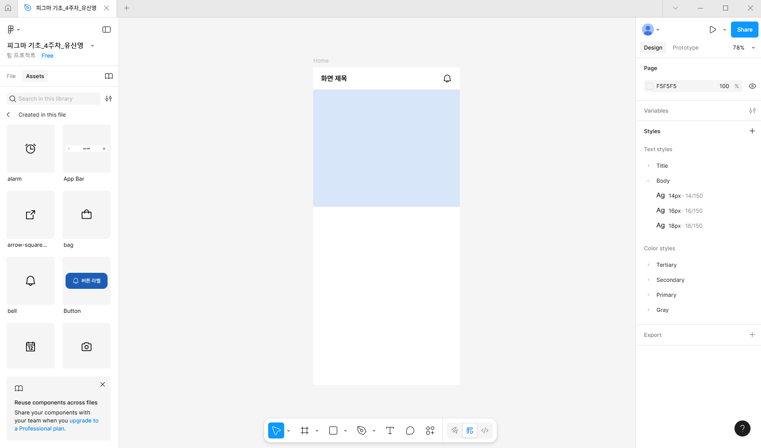 : 걱정인 부분은 피그마를 배울때마다 내가 혼자 만들 수 있을까 걱정 된다.