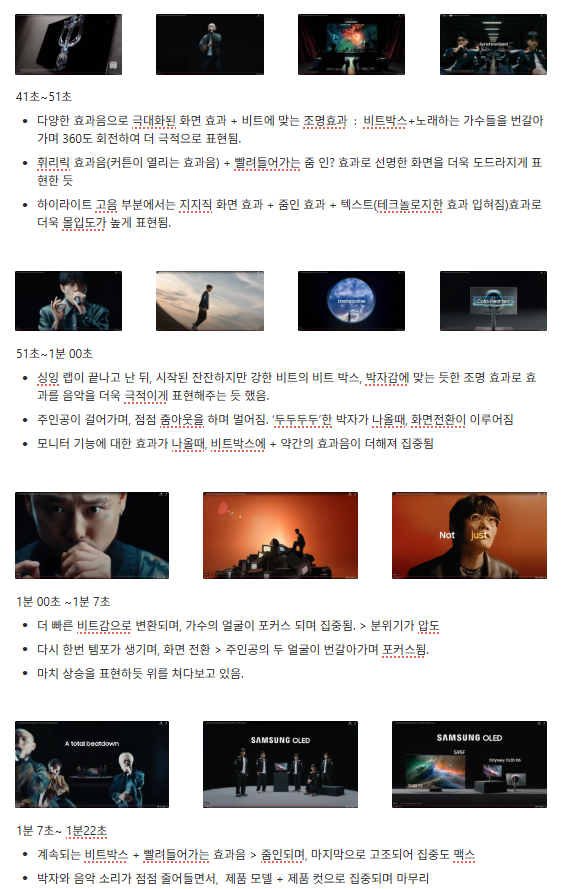 - 비트 박스에서 싱잉 랩 고음 부분 : 클라이막스의 효과로 더욱 몰입과 집중을 할 수 있었음.