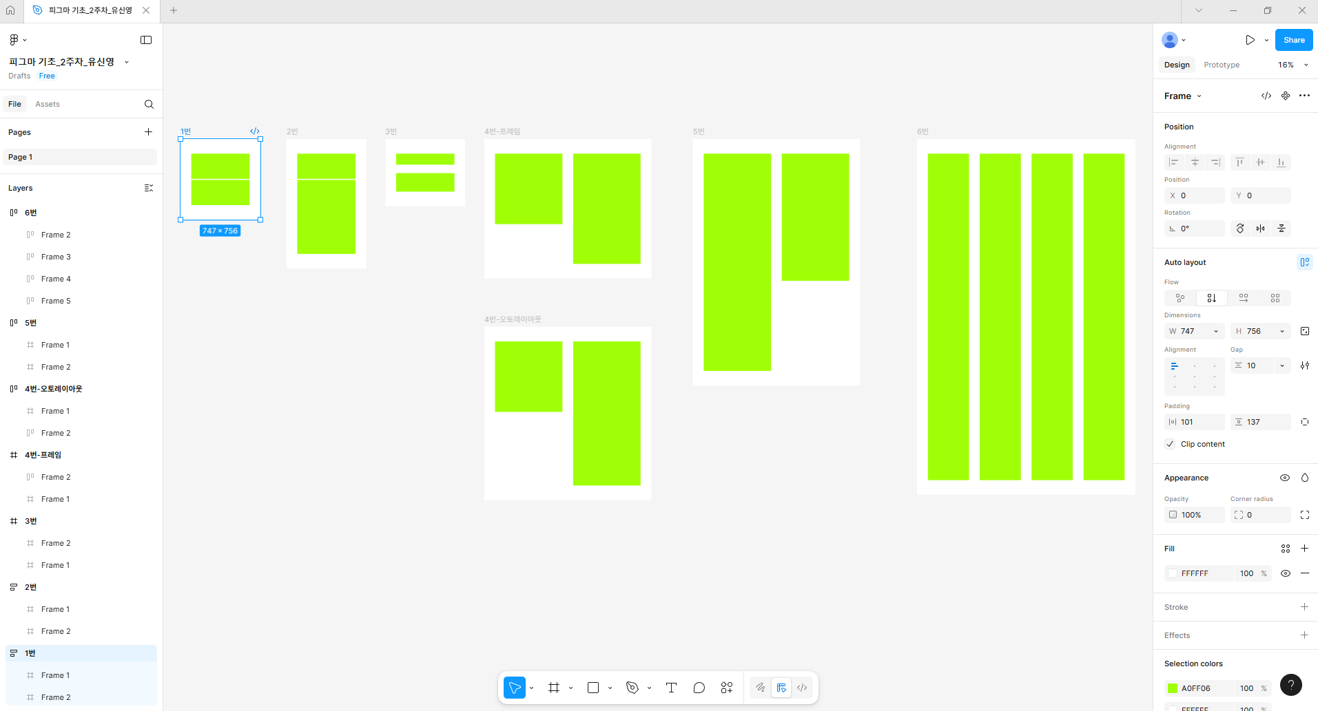 : 프레임은 기본적으로 Fixed 상태(가로,세로 값 고정) > 오토레이아웃으로 감싸면 기본값(Fixed)외의 다른 사이즈 값이 생김
