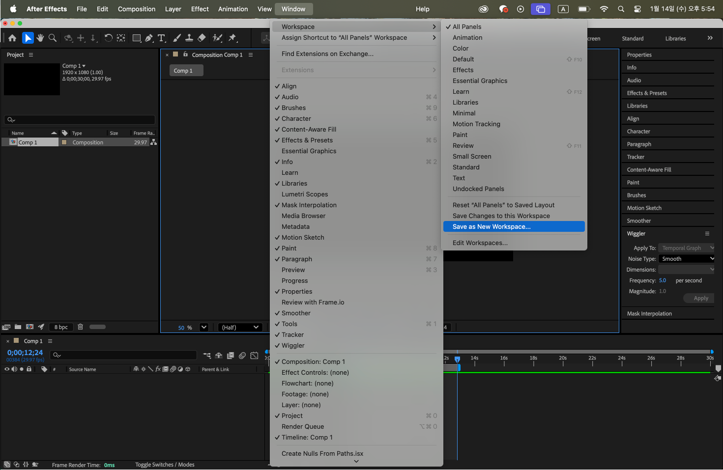 2-1. AE 인터페이스 & 워크스페이스