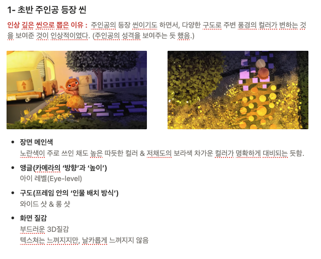 - 감정을 직접적으로 강조하기보다, 시각적 연출 요소들이 단계적으로 작동하며 감정이 형성된다는 점이 효과적으로 느껴졌다.