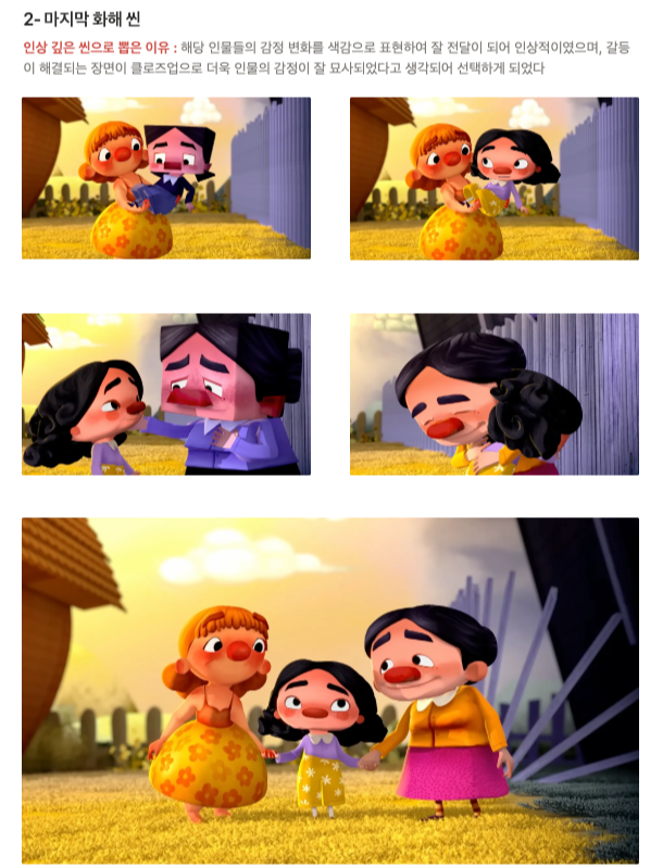 해당 영상은 스토리도 좋았고, 다양한 구도로 인물의 감정 표현도 잘 담았다고 생각이 들어서 인상깊게 남은 영상이며, 오늘의 주제와도 잘 어울린다고 생각이 들어 선택하게 되었다.
