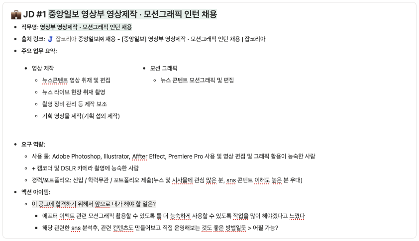 - JD 분석 정리